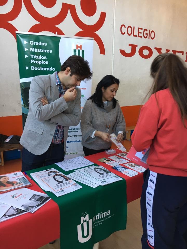 La Universidad a Distancia de Madrid (UDIMA), a través de su Departamento Comercial, participó en la ‘miniferia’ convocada por el Colegio Joyfe para orientar a los alumnos de ESO y Bachillerato en materia de estudios universitarios.
