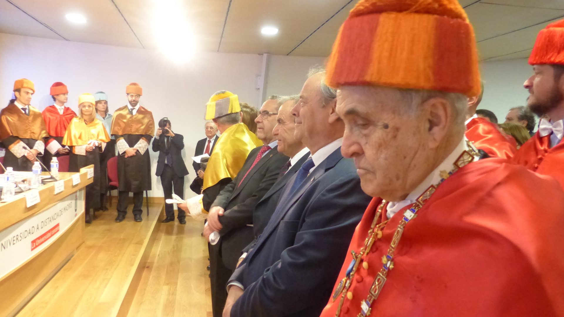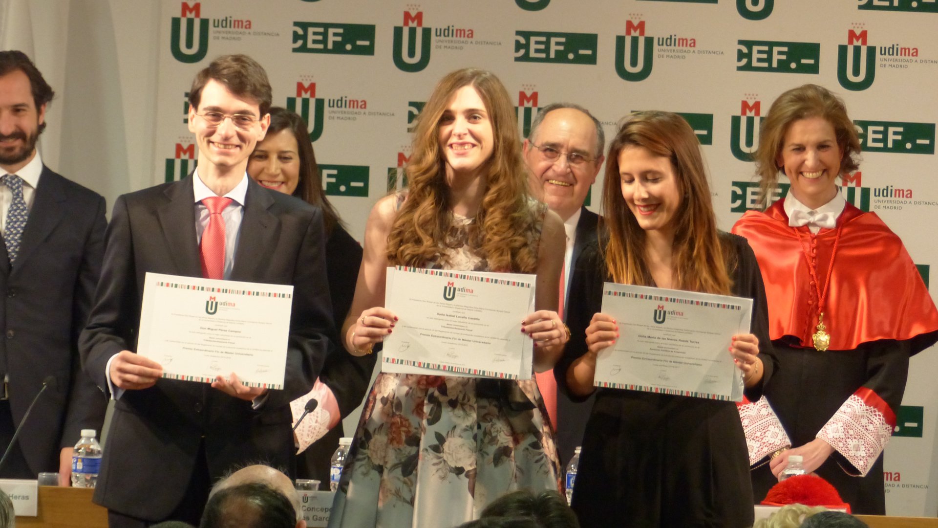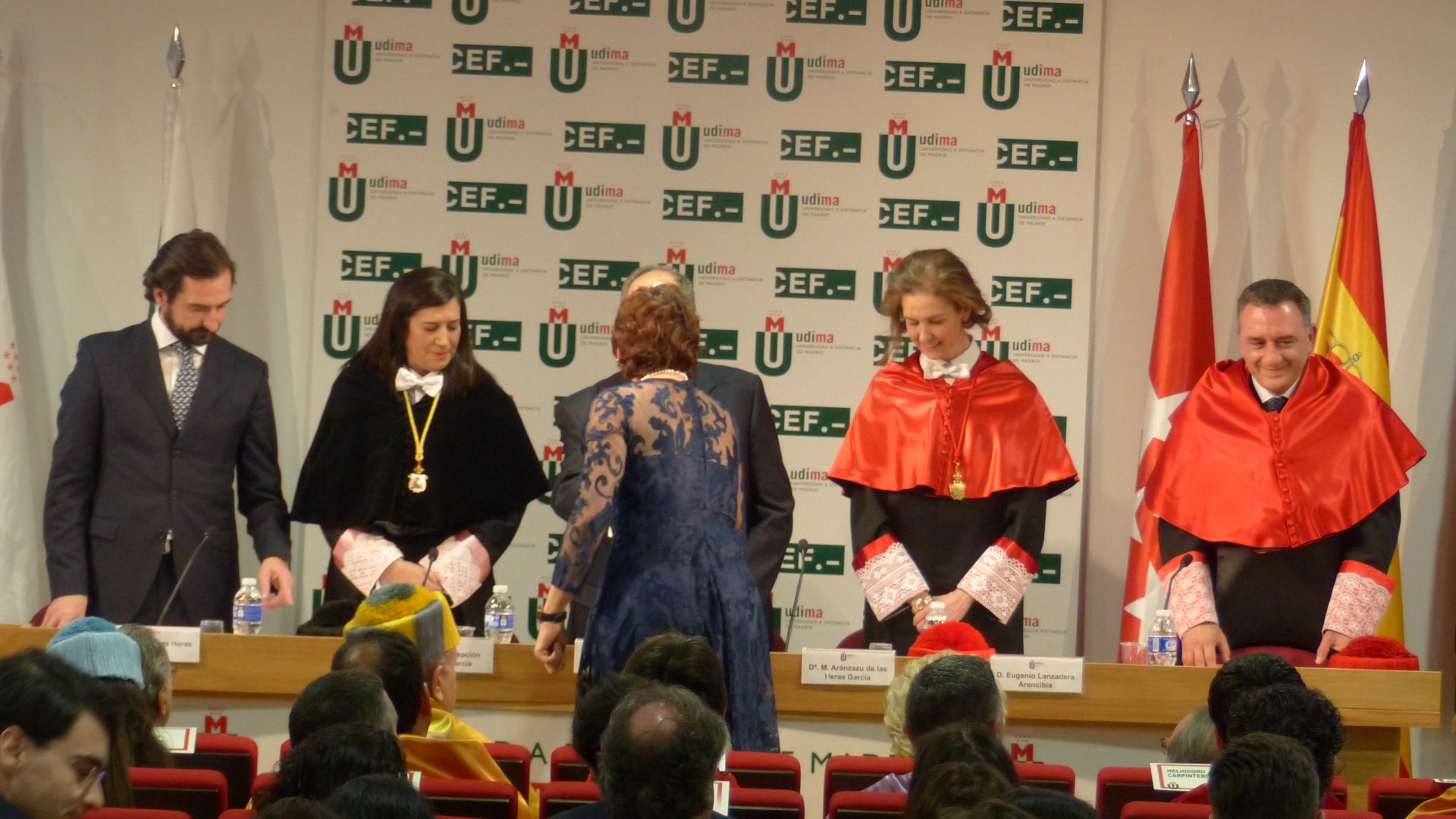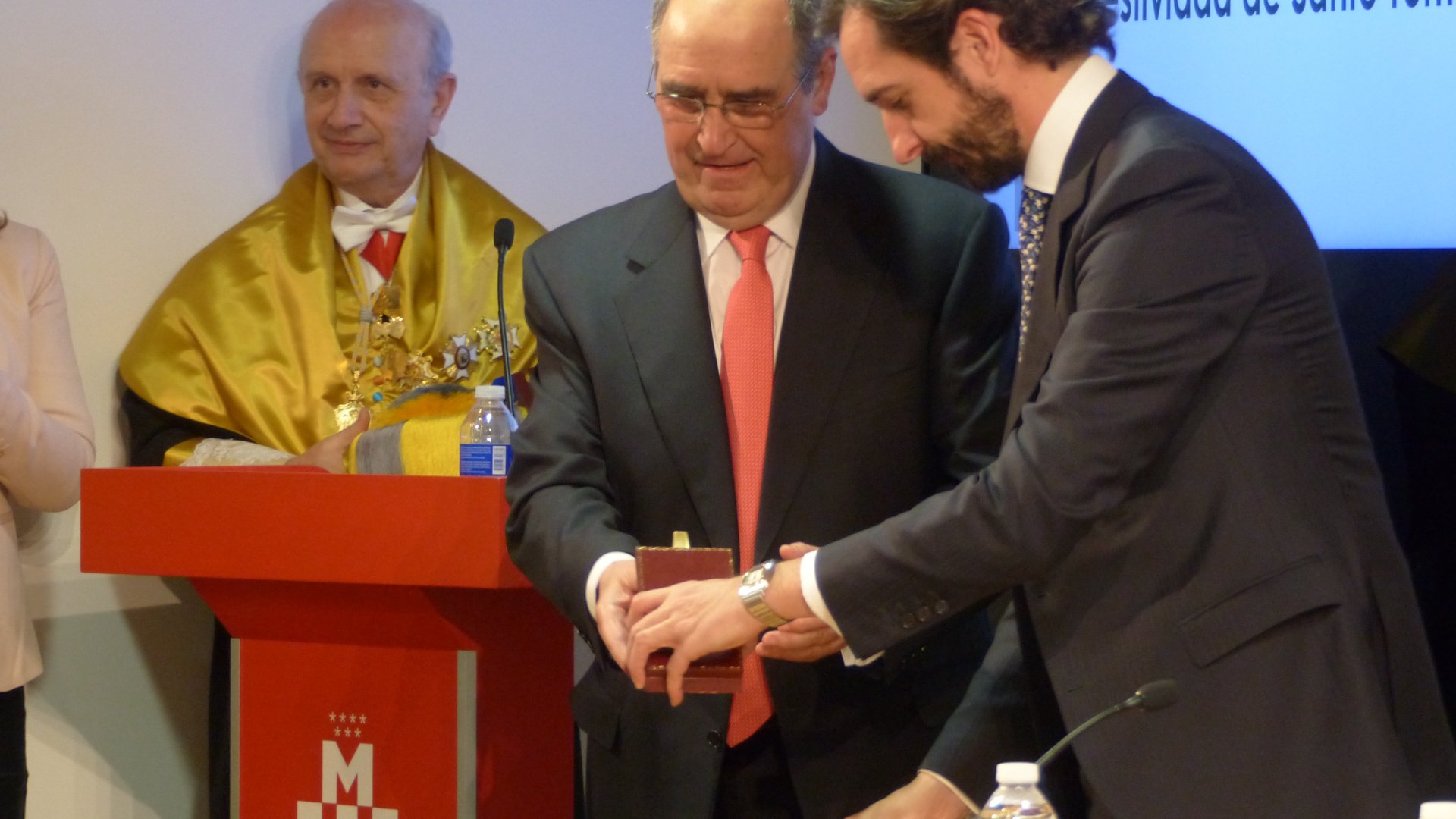 La Universidad hizo entrega de las primeras Medallas de Honor de la institución a destacadas personalidades que ayudaron en su génesis a la formación y desarrollo de la institución. Luis Enrique de la Villa, su primer rector, representó a los galardonados y durante su exposición valoró muy especialmente el papel desempeñado por el presidente del Grupo CEF.- UDIMA, Roque de las Heras, y en particular del secretario general de la Universidad, Eugenio Lanzadera.