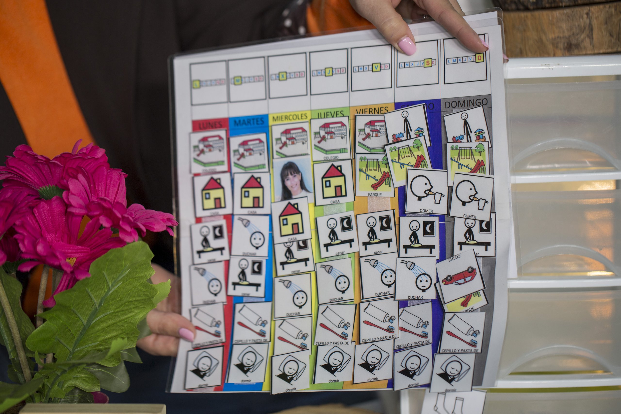 Mediante pictogramas, cronogramas y una clara delimitación de espacios y tiempos, el alumnado aprende a anticipar, comprender y regular su conducta, percibiendo el aula como un entorno "seguro y predecible" que permite "evitar la sobrecarga emocional". En situaciones de desregulación ("momento volcán"), el "Rincón de la calma" —que "no debe ser un castigo"— actúa como espacio de autorregulación con apoyos sensoriales.
