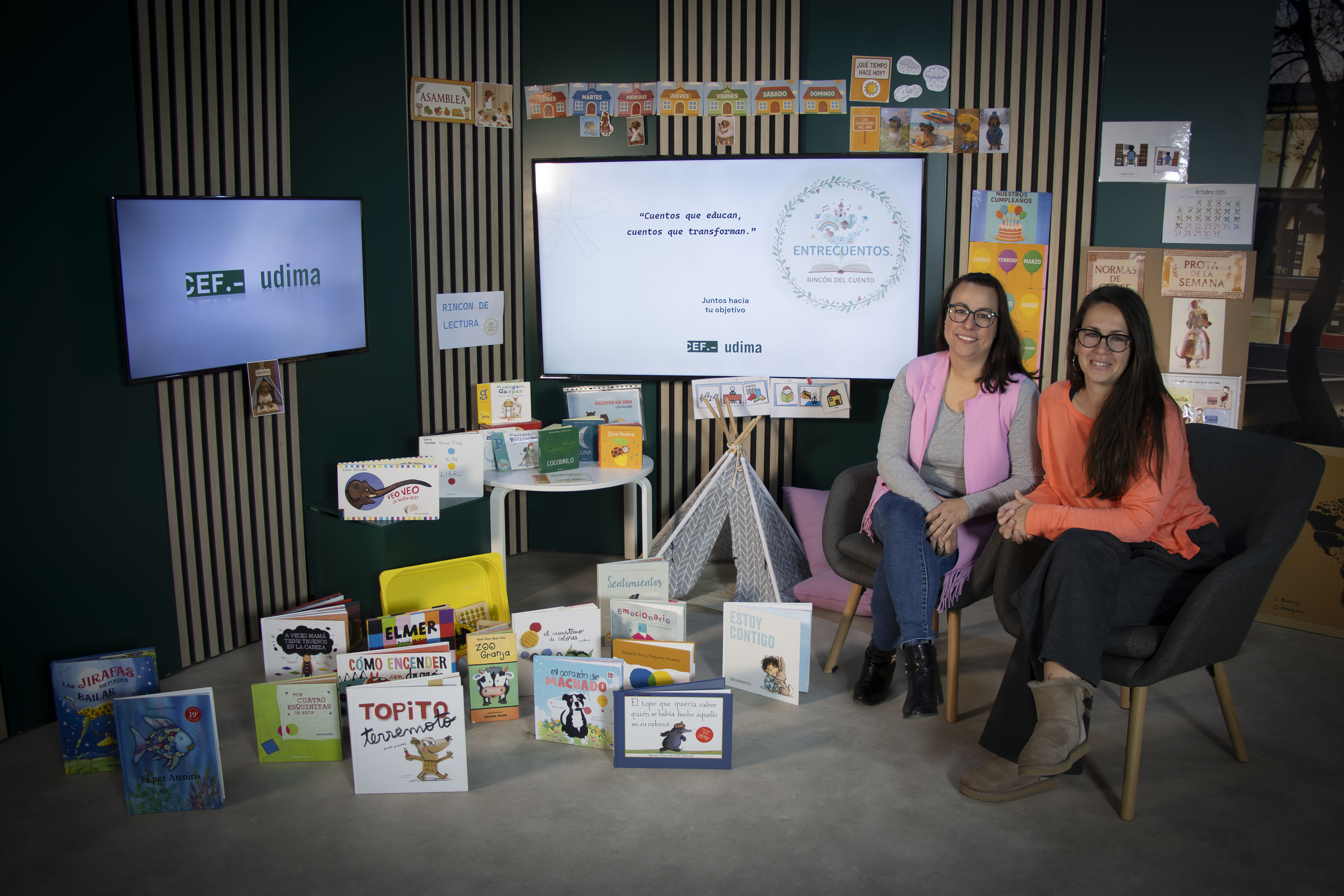 Como el lema El poder del cuento, historias que despiertan, el el rincón de lectura explicará a los futuros docentes cómo los cuentos son también "ventanas a la imaginación, herramientas de aprendizaje y un puente hacia las emociones". Además, explicaba Vázquez, se adaptan a cada estudiante, y pueden potenciar el lenguaje, la inclusión y la atención a la diversidad.