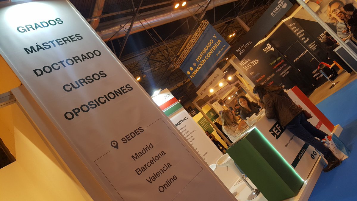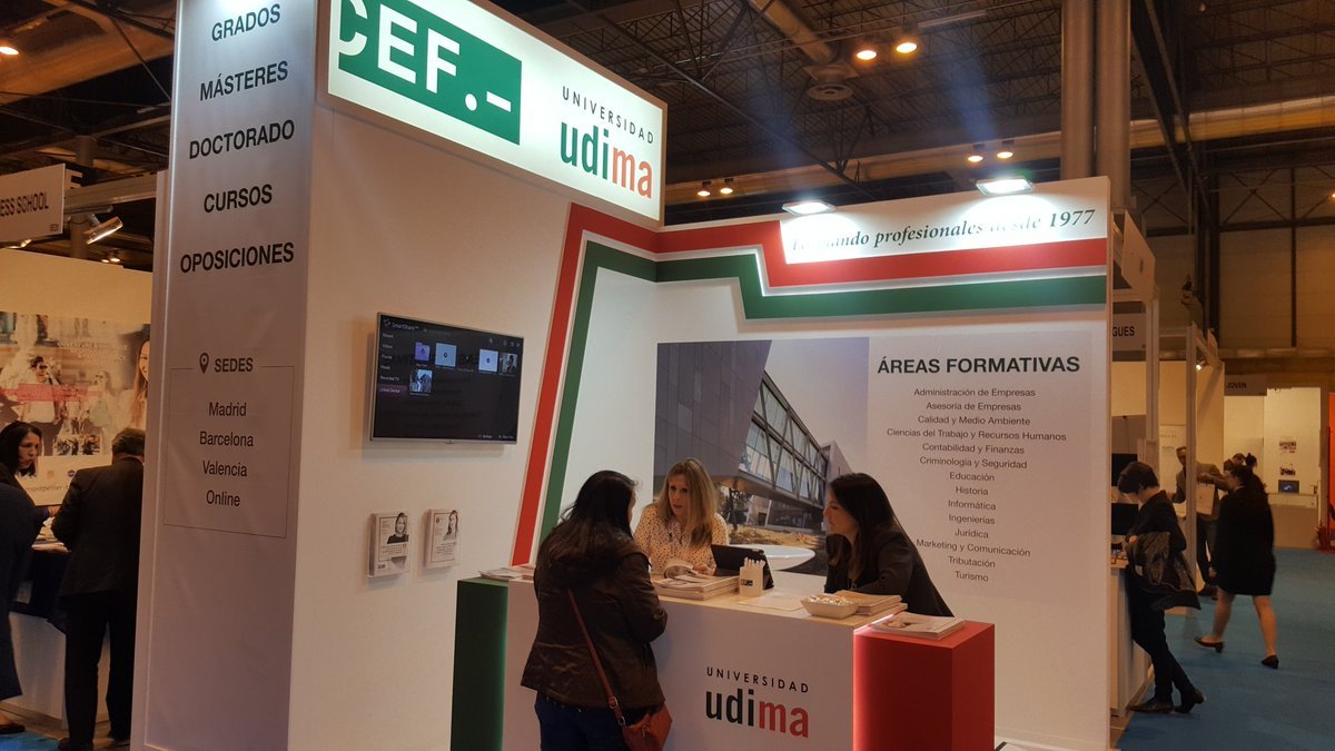 El Grupo Educativo CEF.- UDIMA, que conforman el Centro de Estudios Financieros y la Universidad a Distancia de Madrid, exponen su acreditada oferta académica en el Salón Internacional de Postgrado y Formación Continua que se celebra en el marco de la Semana de la Educación que, junto con AULA y otros eventos paralelos en este ámbito, acoge el recinto ferial de Ifema.