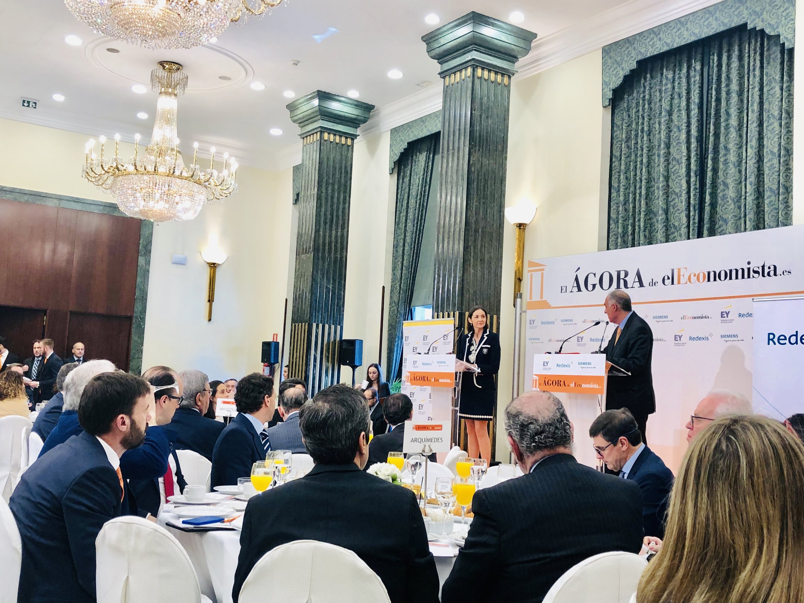 Observaciones que realizó la ministra en funciones durante su participación en ‘El Ágora de El Economista’, desayuno de trabajo organizado por el rotativo de economía, al que asistieron como invitados la profesora del Grado en Empresas y Actividades Turísticas de la Universidad a Distancia de Madrid, UDIMA, la doctora Raquel García Revilla, acompañada de la estudiante Inmaculada Ibarrondo Jurado.