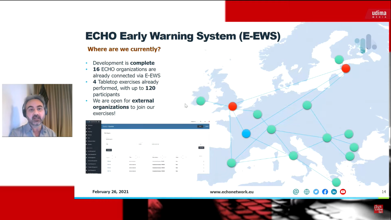 Matteo Merialdo avanzó a grandes rasgos la evolución del proyecto ECHO de la UE en materia de ciberseguridad. Como responsable del proyecto, Merialdo explicó los hitos de esta estrategia comunitaria, que se está implantando junto a otros tres proyectos pilares (Concordia, Sparta y CyberSec4Europe). Un plan que busca ante todo lograr una autonomía europea en materia de ciberseguridad reuniendo toda la información y capacidades disponibles en el espacio económico común, desgranó por videoconferencia.