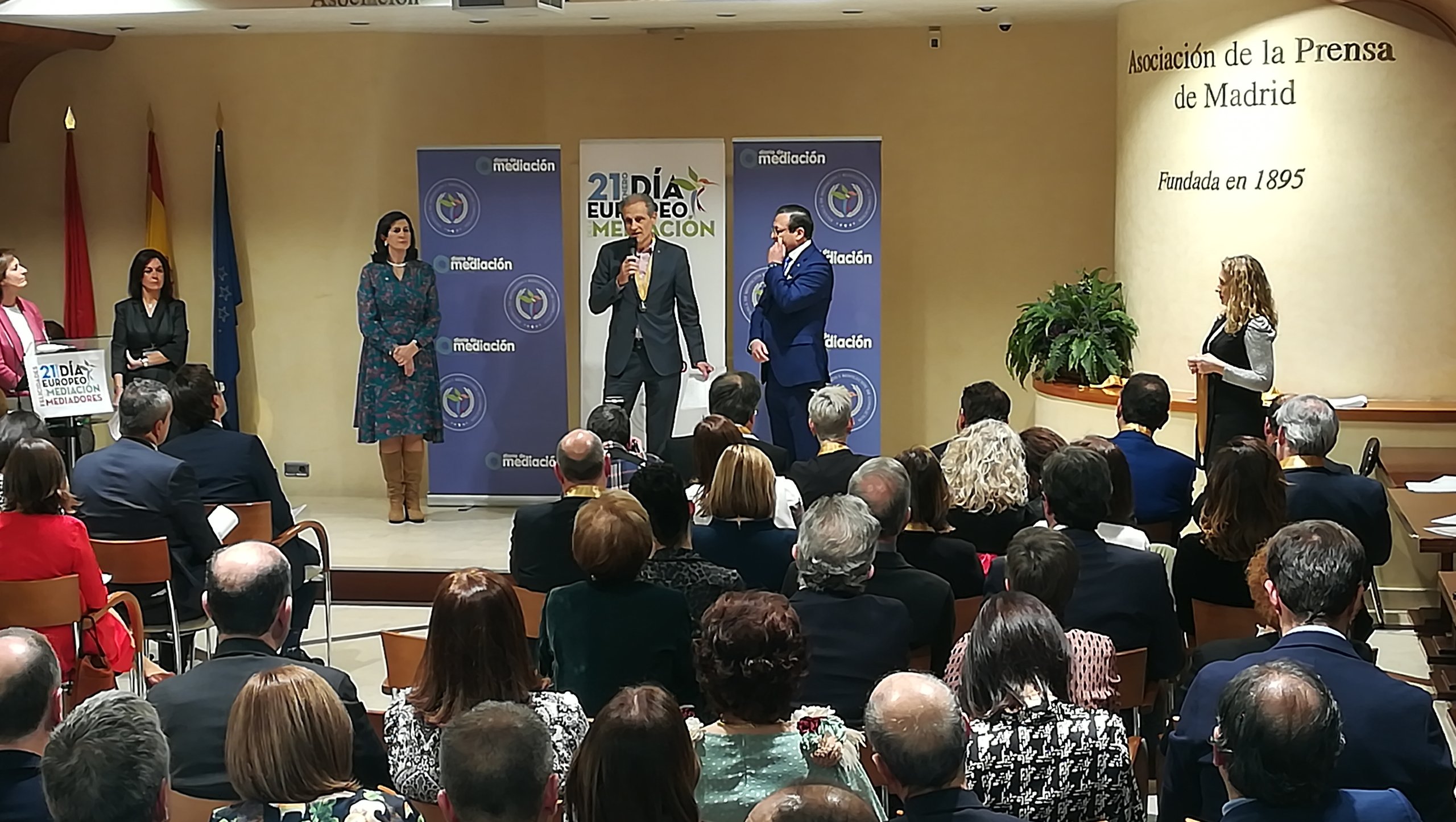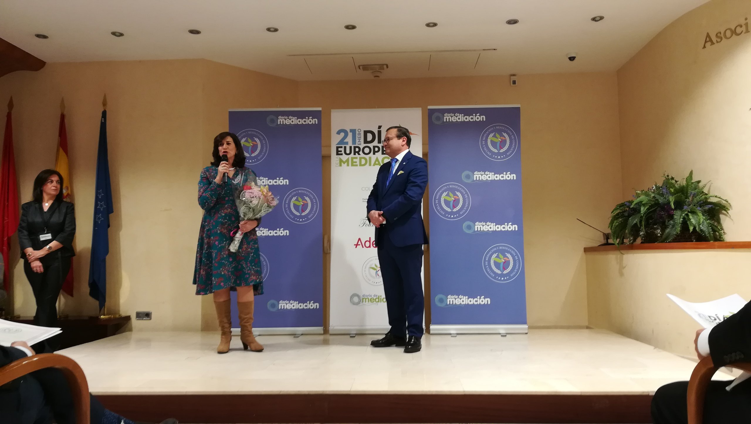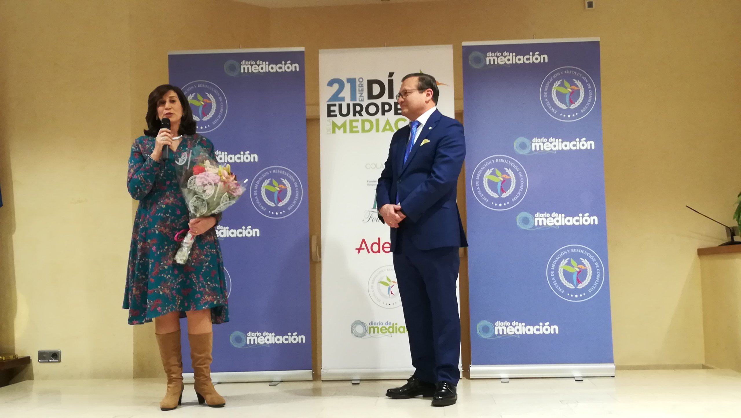 El evento, celebrado en la sede de la Asociación de la Prensa de Madrid (APM), contó, así mismo, con la asistencia, entre otros, del vicerrector de Universidad-Empresa, Juan Luis Rubio. La entrega coincide todos los años con la celebración del Día Europeo de la Mediación, que tiene lugar el 21 de enero.