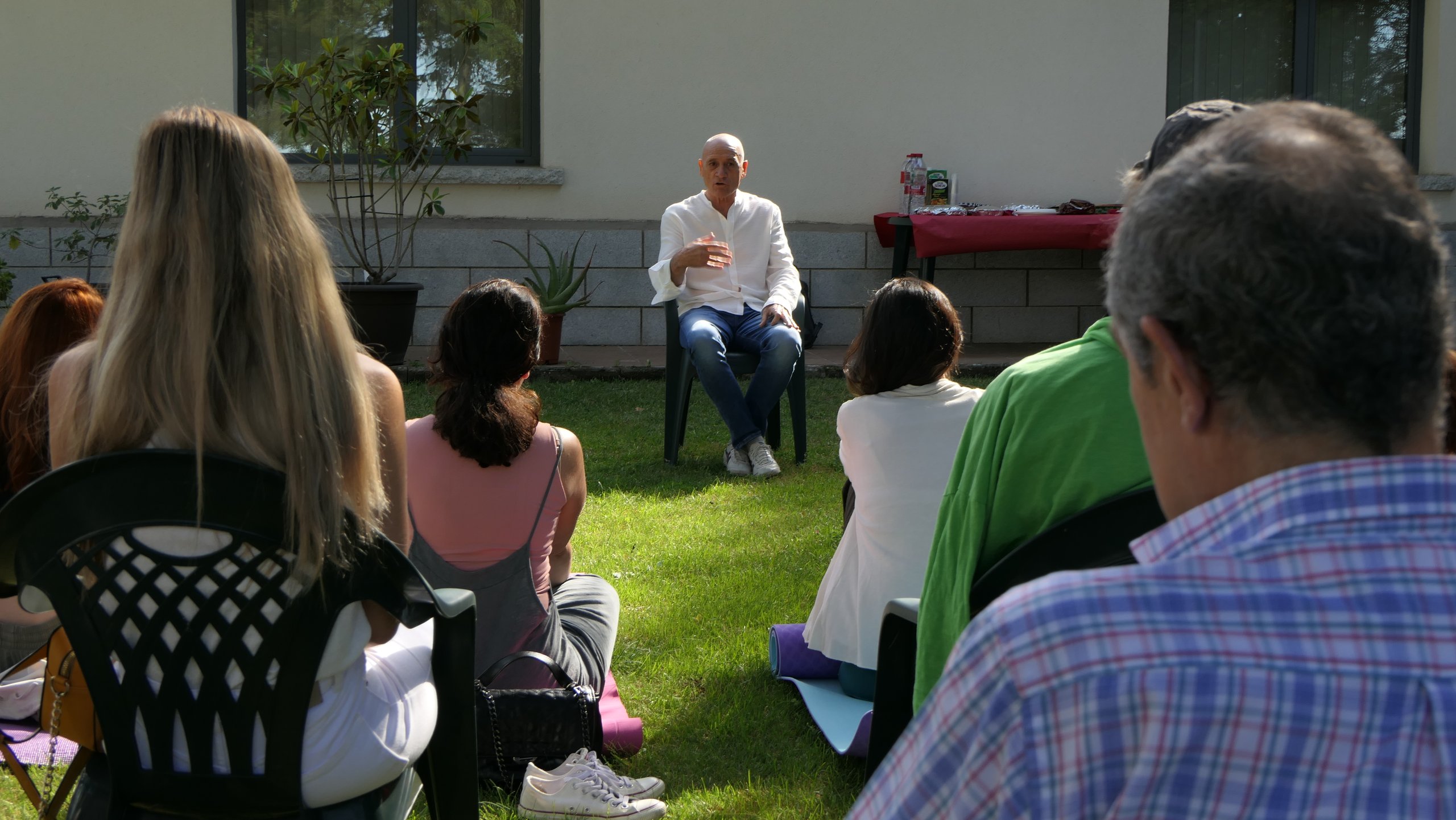 Durante esta jornada, con carácter extraordinario acompañó a Ángela de Las Heras y Pedro Laguna, profesores del curso en mindfulness, Lobsang Zopa, monje español, ordenado por Su Santidad el XIV Dalai Lama en Dharamsala, ‘India’.