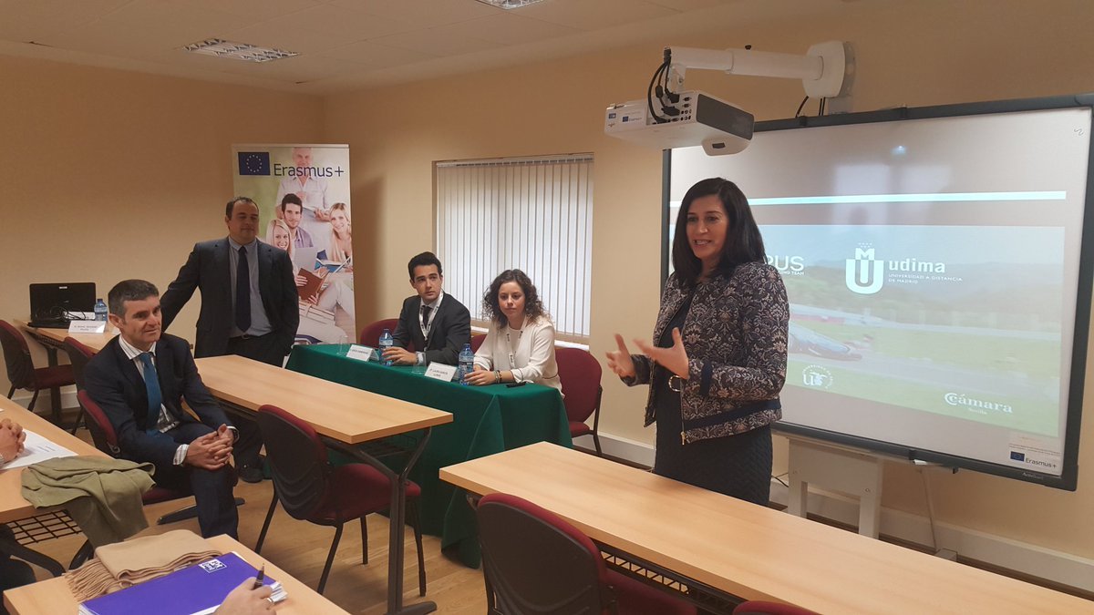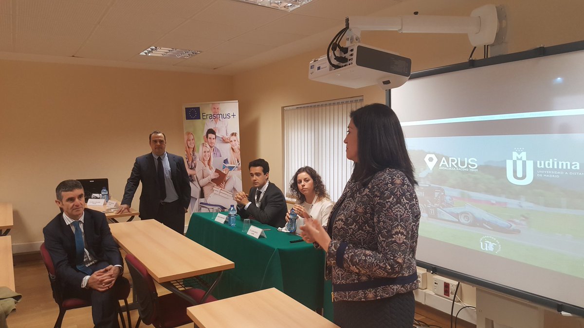Laura García Llinás, directora general del Proyecto Arus: Andalucía Racing Team, y Jesús Carnerero, de su Departamento de Business, se desplazaron hasta el Campus de Collado Villalba para detallar en qué consiste una iniciativa cuyo objetivo es representar a Sevilla, Andalucía y España en la competición automovilística universitaria más importante del planeta, la Formula Student.
