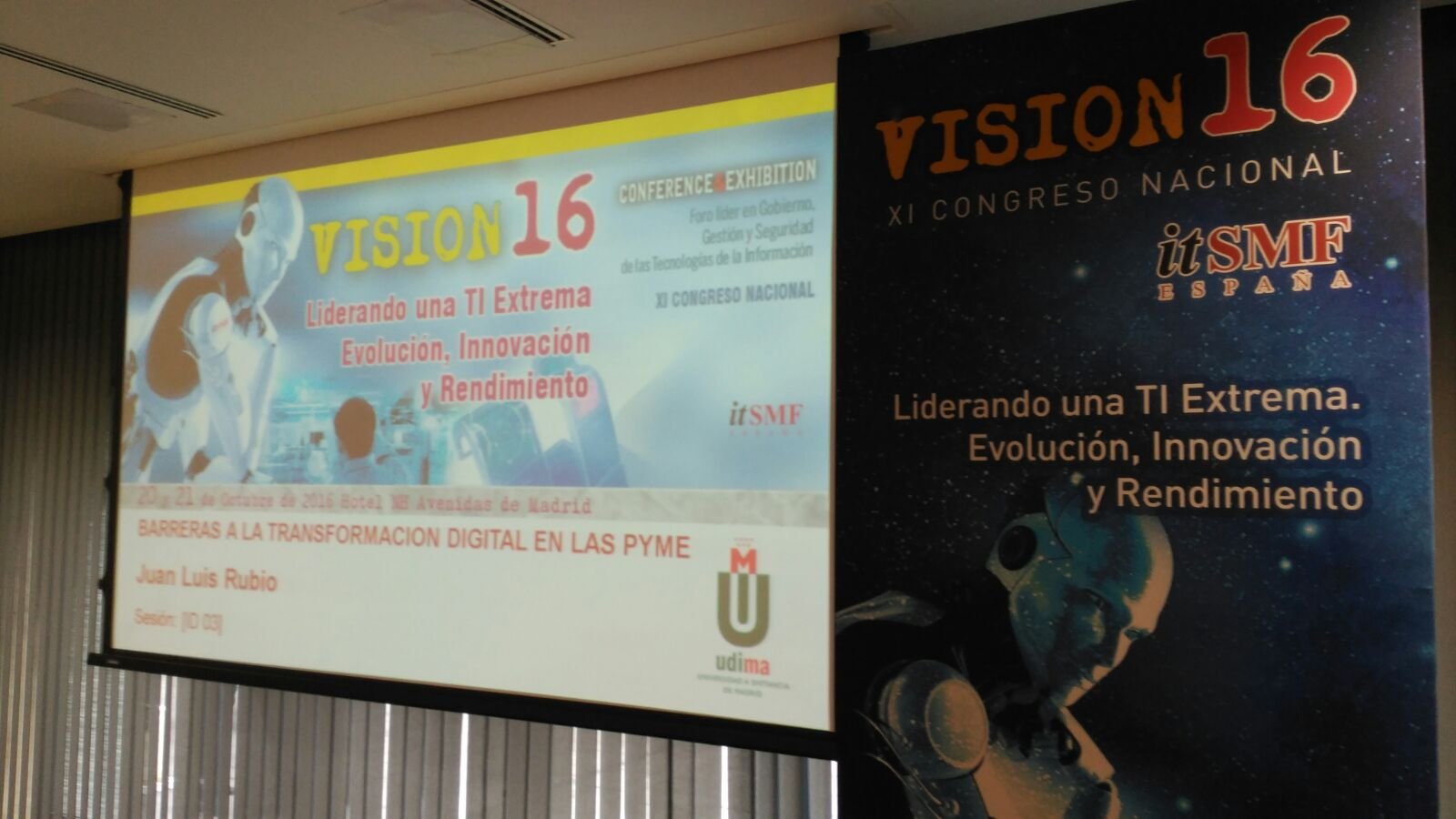 ‘Barreras a la transformación digital en las pymes’ es el título de la ponencia que impartió el vicerrector de Relaciones Universidad-Empresa en el marco del Congreso Nacional Vision16, que reunió en Madrid a centenares de expertos en la materia. Rubio trasladó a los asistentes los resultados de algunos proyectos realizados con pymes en los que, lamentó, “se evidencia la dificultad de que éstas concluyan lo que llamamos 'transformación digital'”.