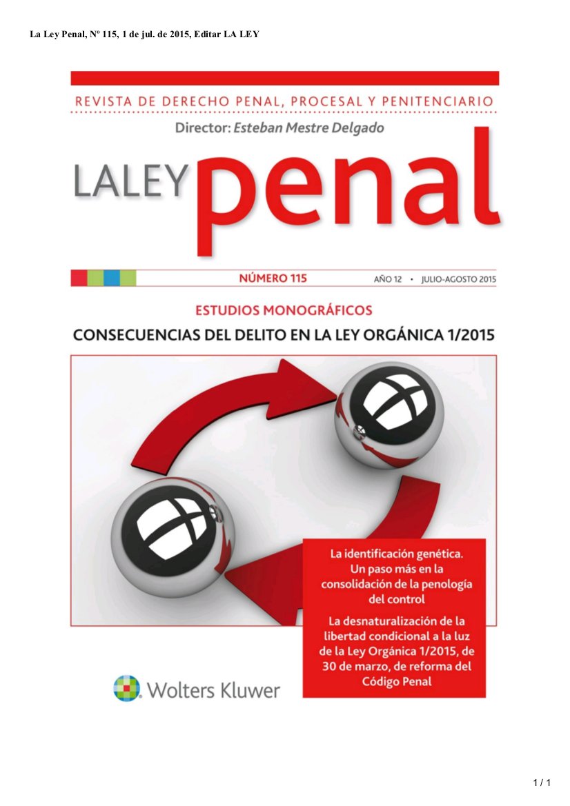 El profesor del Grado en Derecho de la UDIMA, el Dr. Daniel Fernández Bermejo, ha publicado recientemente el artículo: “La desnaturalización de la libertad condicional a la luz de la Ley Orgánica 1/2015, de 30 de marzo, de reforma del Código Penal”, en La Ley Penal, número 115 (julio-agosto 2015), Sección “Estudios”, en la revista La Ley Penal.