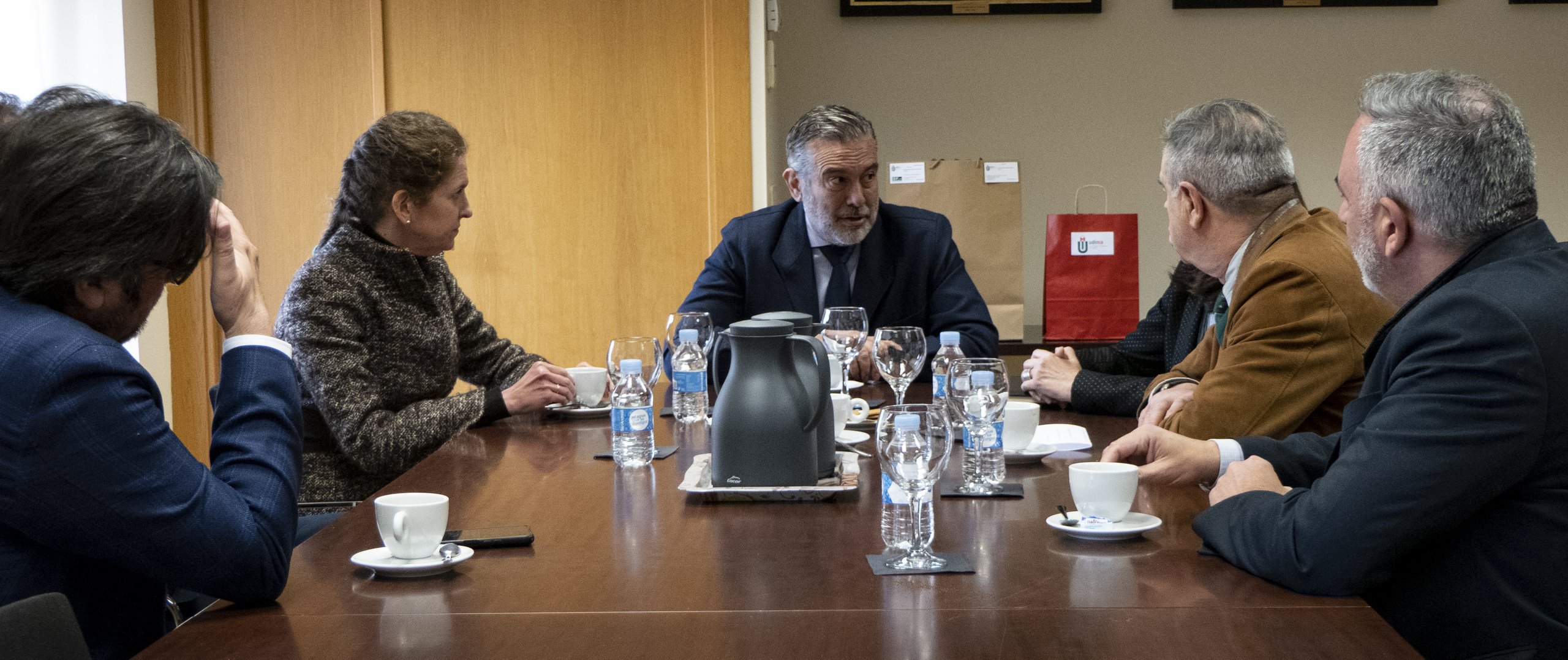 López estuvo acompañado por la presidenta de la UDIMA, Aránzazu de la Heras; la rectora, Concha Burgos; el secretario general, Eugenio Lanzadera, y el decano de la Facultad de Ciencias Jurídicas, Andrés Delgado.