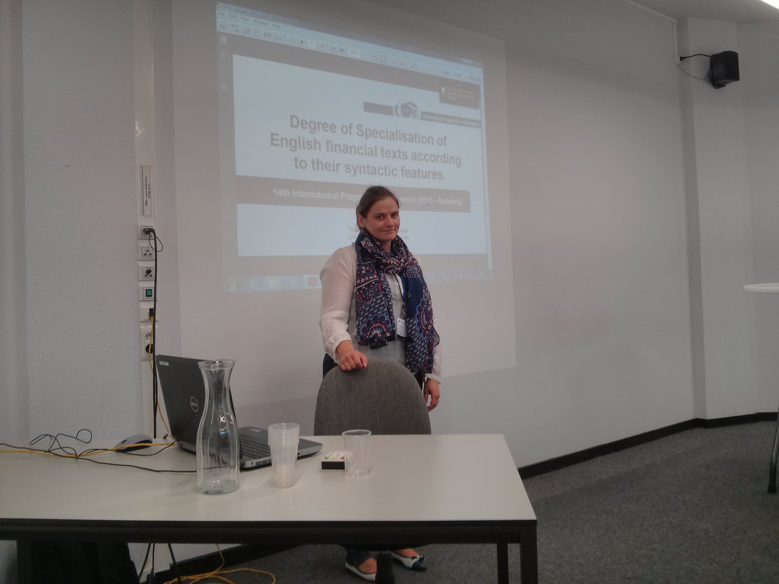 La profesora del Grado en Periodismo de la Universidad a Distancia de Madrid (UDIMA), Yolanda Berdasco-Gancedo, ha presentado este lunes su ponencia “Degree of Specialisation of English financial texts according to their syntactic features” en el 14º Congreso Internacional de Pragmática, que se celebra en Amberes (Bélgica) entre el 26 y el 31 de este mes. Durante su exposición, la profesora Berdasco-Gancedo ha presentado un modelo de clasificación de textos informativos de temática financiera, a partir de sus características sintácticas. Una herramienta fruto del estudio de un amplio corpus textual en inglés, con la que se pretende poder categorizar los textos de este área de conocimiento, de acuerdo a su nivel de especialización. Se trata de una aportación innovadora, fruto del trabajo de varios años, que implica además el uso de herramientas estadísticas para la clasificación textual y pretende servir de modelo inicial para futuras investigaciones.